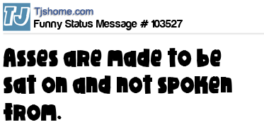- # 78473 Have you ever realized how many types of asses there are? SmartASS. DumbASS. CrazyASS. StupidASS. Who knew asses had personalities?