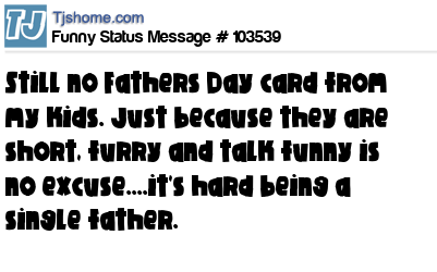 X Still no Fathers Day card from my kids. Just because they are short, furry and talk funny is no excuse....it's hard being a single father.