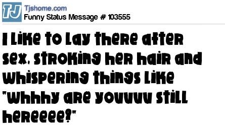 X says I like to lay there after sex, stroking her hair and whispering things like "whhhy are youuuu still hereeee?"
