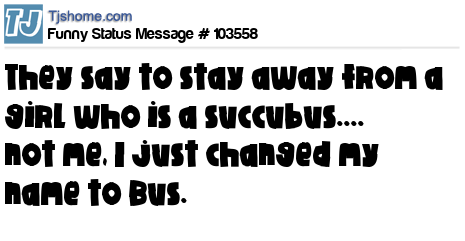 X They say to stay away from a girl who is a succubus.... not me, I just changed my name to Bus.