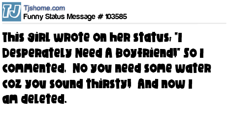 X says This girl wrote on her status; "I Desperately Need A Boyfriend!" So I commented, “No you need some water coz you sound thirsty!” And now I am deleted.