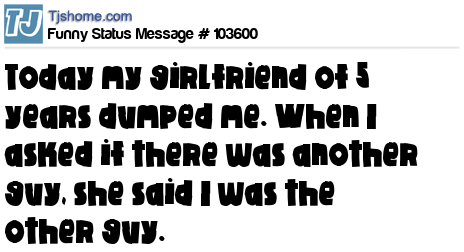 X says Today my girlfriend of 5 years dumped me. When I asked if there was another guy, she said I was the other guy.