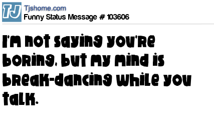 X is I'm not saying you're boring, but my mind is break-dancing while you talk.
