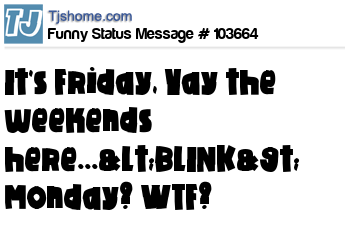 X It's Friday, Yay the weekends here...<BLINK> Monday? WTF?