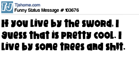 - # 120524 If you live by the sword, I guess that's pretty cool. I live by some trees and other houses