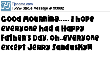 X says Good mourning...... I hope everyone had a Happy Father's Day, oh..everyone except Jerry Sandusky!!