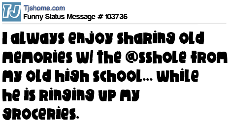X says I always enjoy sharing old memories w/ the @sshole from my old high school... while he is ringing up my groceries.