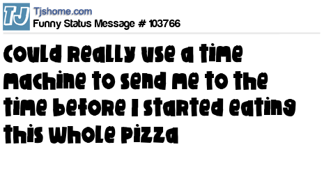 - # 170203 I've time traveled almost an infinite number of times to stop myself from eating too much pizza, but every time,, future me just joins past me in eating it*