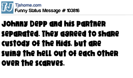 X says Johnny Depp and his partner separated. They agreed to share custody of the kids, but are suing the hell out of each other over the scarves.