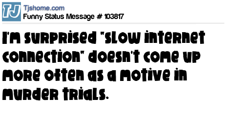 X I'm surprised "slow internet connection" doesn't come up more often as a motive in murder trials.