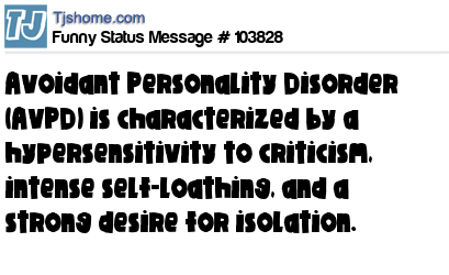 X Avoidant Personality Disorder (AVPD) is characterized by a hypersensitivity to criticism, intense self-loathing, and a strong desire for isolation.