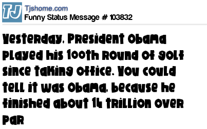 X is Yesterday, President Obama played his 100th round of golf since taking office. You could tell it was Obama, because he finished about 14 trillion over par