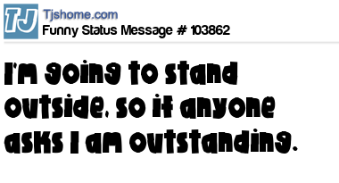 X I'm going to stand outside, so if anyone asks I am outstanding.