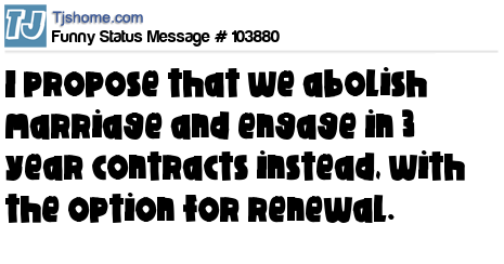 X is I propose that we abolish marriage and engage in 3 year contracts instead, with the option for renewal.
