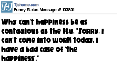 X says Why can't happiness be as contagious as the flu. "Sorry, I can't come into work today, I have a bad case of 'the happiness'."