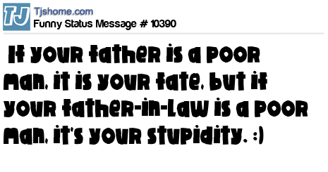 X says If your father is a poor man, it is your fate, but if your father-in-law is a poor man, it's your stupidity. :)