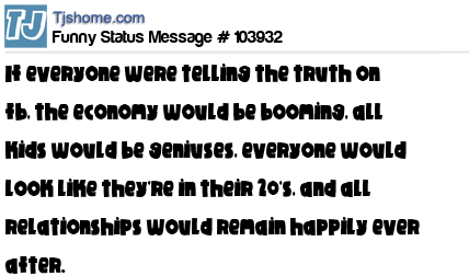X If everyone were telling the truth on fb, the economy would be booming, all kids would be geniuses, everyone would look like they're in their 20's, and all relationships would remain happily ever after.