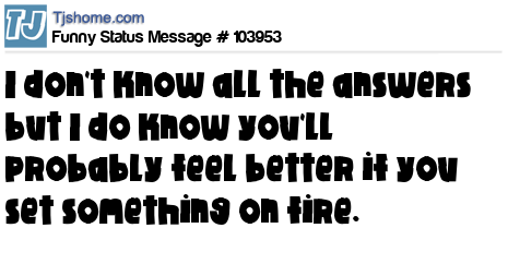 X says I don't know all the answers but I do know you'll probably feel better if you set something on fire.