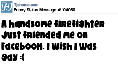 X says A handsome firefighter just friended me on Facebook. I wish I was gay :(
