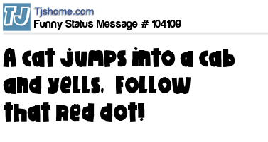 X A cat jumps into a cab and yells, “Follow that red dot!”