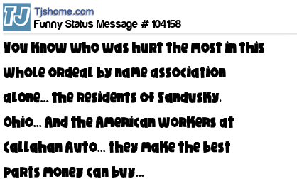 X says You know who was hurt the most in this whole ordeal by name association alone... the residents of Sandusky, Ohio... And the American workers at Callahan Auto... they make the best parts money can buy...