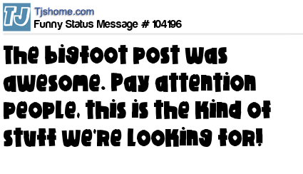 X The bigfoot post was awesome. Pay attention people, this is the kind of stuff we're looking for!