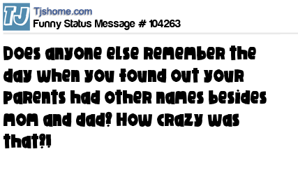 X is Does anyone else remember the day when you found out your parents had other names besides mom and dad? How crazy was that?!