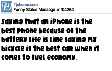 X is Saying that an iPhone is the best phone because of the battery life is like saying my bicycle is the best car when it comes to fuel economy.