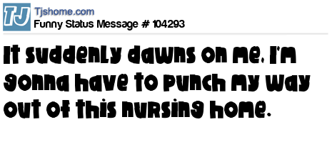 X It suddenly dawns on me, I'm gonna have to punch my way out of this nursing home.
