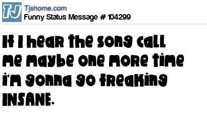 X is If I hear the song call me maybe one more time i'm gonna go freaking INSANE.
