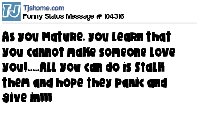 - # 64515 As you Mature... you learn that you cannot make someone love you.. All you can do is stalk them and hope they panic and give in..