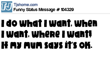 X is I do what I want, when I want, where I want! If my mum says it's ok.