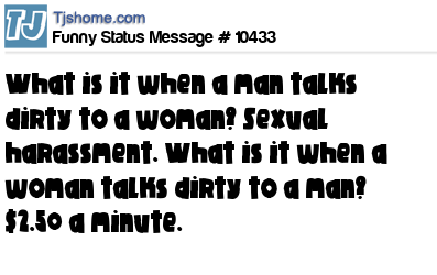 - # 62159 When a man talks dirty to a woman it's sexual harassment, but when a woman talks dirty to a man it's $3.95 a minute!!