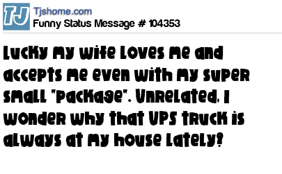 X says Lucky my wife loves me and accepts me even with my super small "package". Unrelated, I wonder why that UPS truck is always at my house lately?