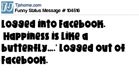 X says Logged into Facebook. ‘Happiness is like a butterfly….' Logged out of Facebook.