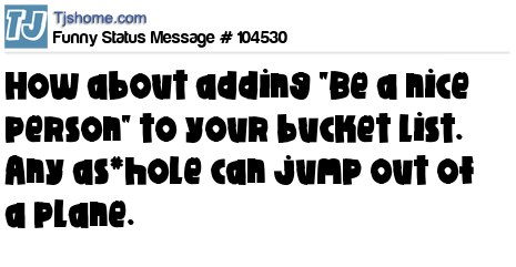 X How about adding "Be a nice person" to your bucket list. Any as*hole can jump out of a plane.