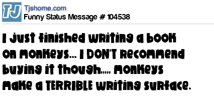 X I just finished writing a book on monkeys... I DON'T recommend buying it though,,,,, monkeys make a TERRIBLE writing surface.