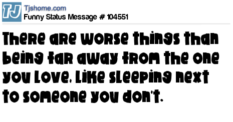 X says There are worse things than being far away from the one you love, like sleeping next to someone you don't.