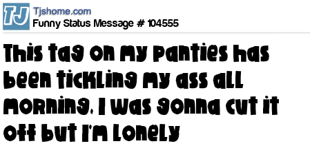 X says This tag on my panties has been tickling my ass all morning, I was gonna cut it off but I'm lonely