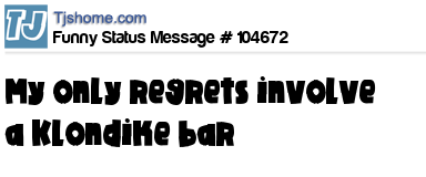 X says My only regrets involve a Klondike bar