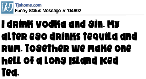 X says I drink vodka and gin. My alter ego drinks tequila and rum. Together we make one hell of a Long Island Iced Tea.