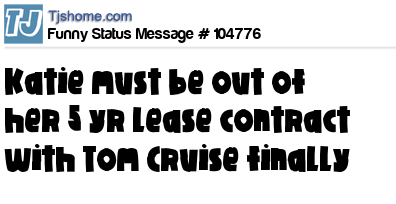 X is Katie must be out of her 5 yr lease contract with Tom Cruise finally