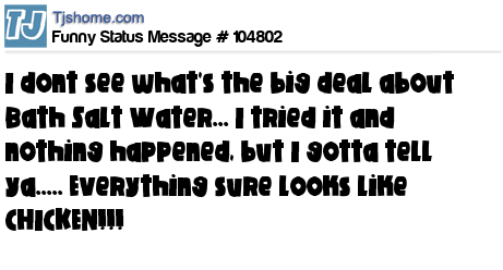 X I dont see what's the big deal about Bath Salt Water... I tried it and nothing happened, but I gotta tell ya..... Everything sure looks like CHICKEN!!!