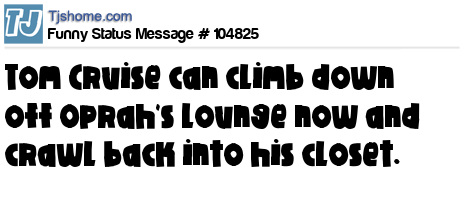 - # 91458 Neat thing about being Tom Cruise is if he misses a workout he can just crawl inside a friend's mouth and use his uvula as a punching bag.