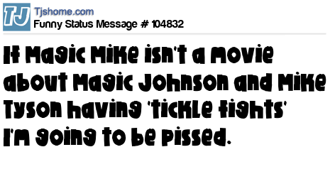 X says If Magic Mike isn't a movie about Magic Johnson and Mike Tyson having 'tickle fights' I'm going to be pissed.