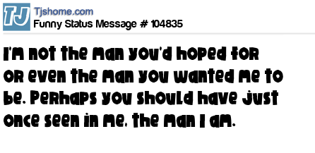 X says I'm not the man you'd hoped for or even the man you wanted me to be. Perhaps you should have just once seen in me, the man I am.