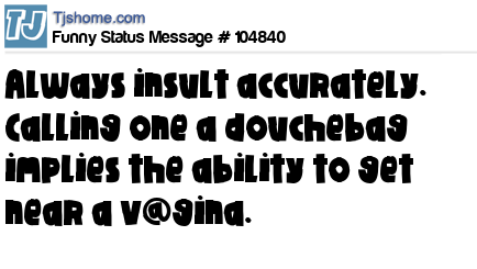 X says Always insult accurately. Calling one a douchebag implies the ability to get near a v@gina.
