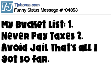 X My Bucket List: 1. Never Pay Taxes 2. Avoid Jail That's all I got so far.