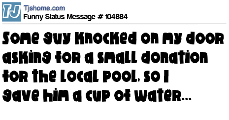 X says Some guy knocked on my door asking for a small donation for the local pool, so I gave him a cup of water...