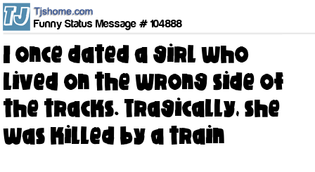 X I once dated a girl who lived on the wrong side of the tracks. Tragically, she was killed by a train